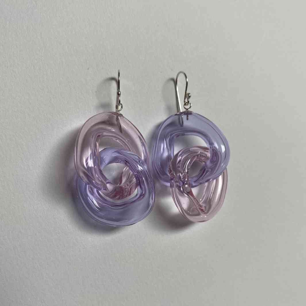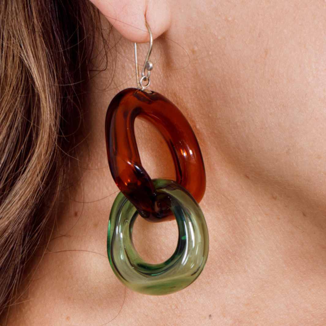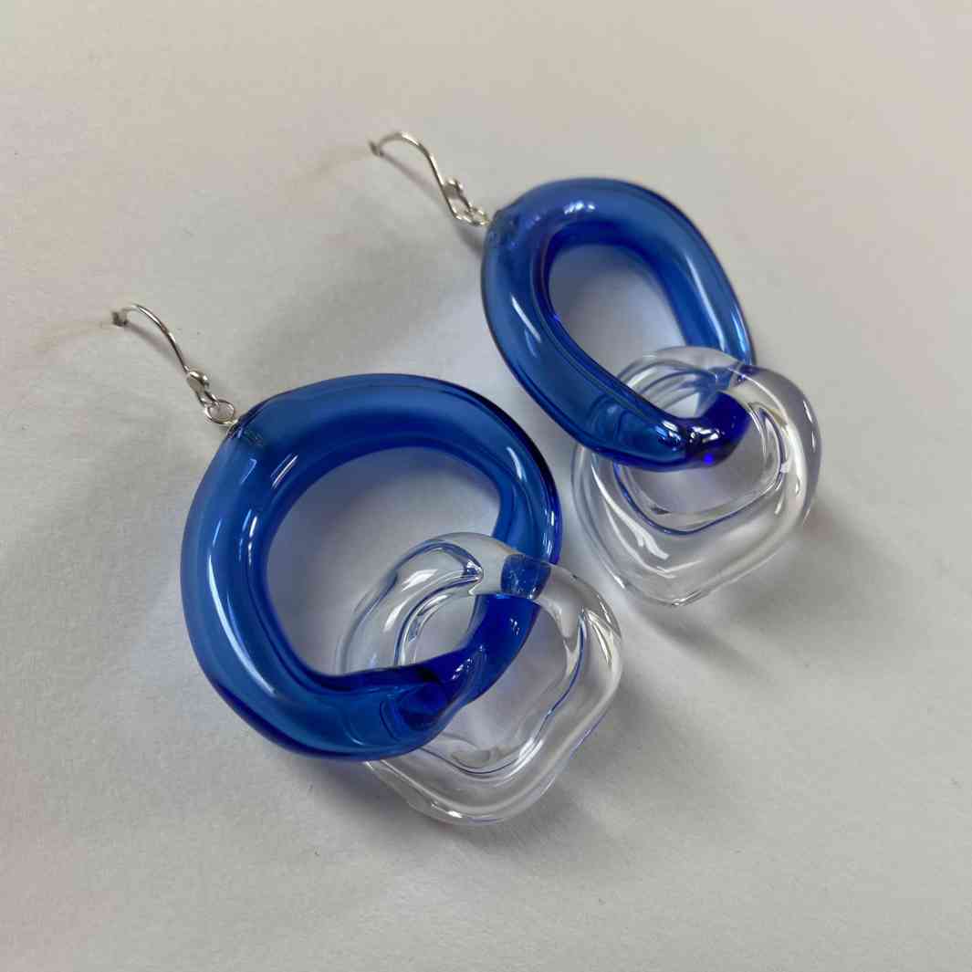 My glass link earrings are blown from a hollow borosilicate glass tube usually used in scientific glassblowing.