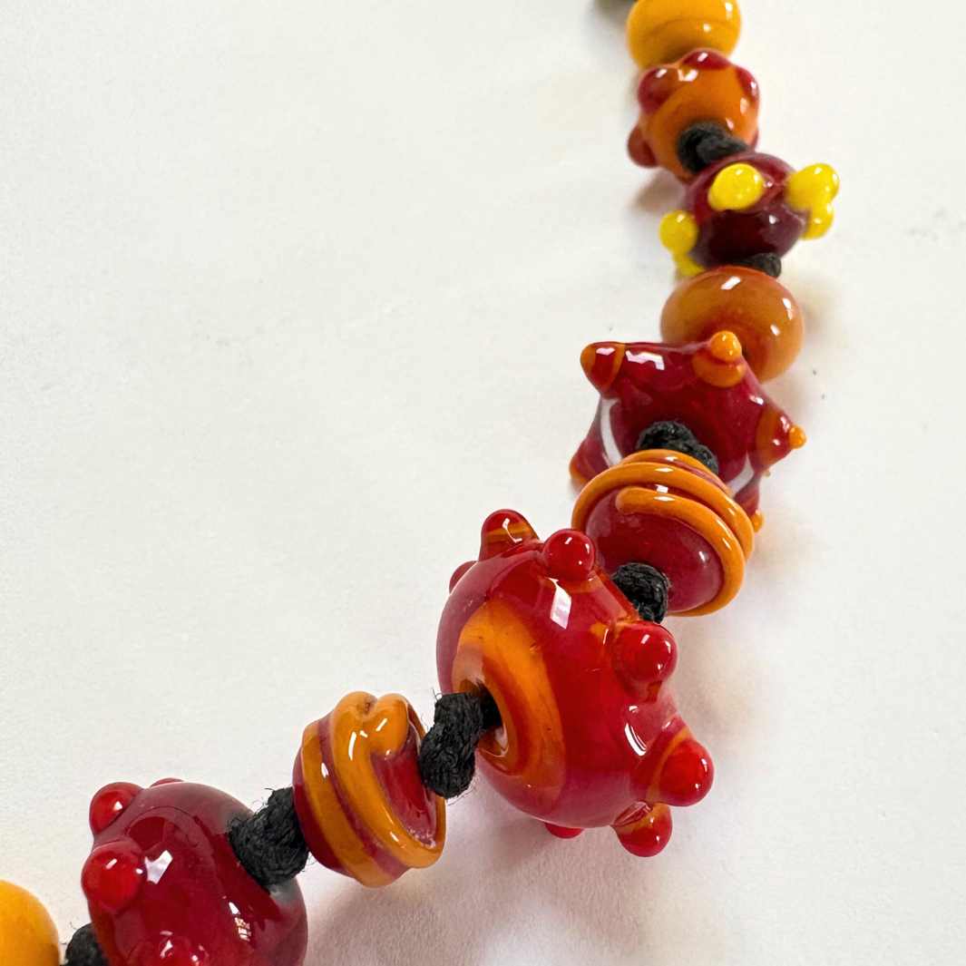 Each necklace features a joyful mix of tiny glass beads, handmade from leftover scraps in my studio. They’re knotted onto adjustable black cord for an easy, everyday piece that’s light to wear and full of character. Just like the Circus beads I made in my early days, these are small and bright, but this time around there's a whole new reason for me to make them.